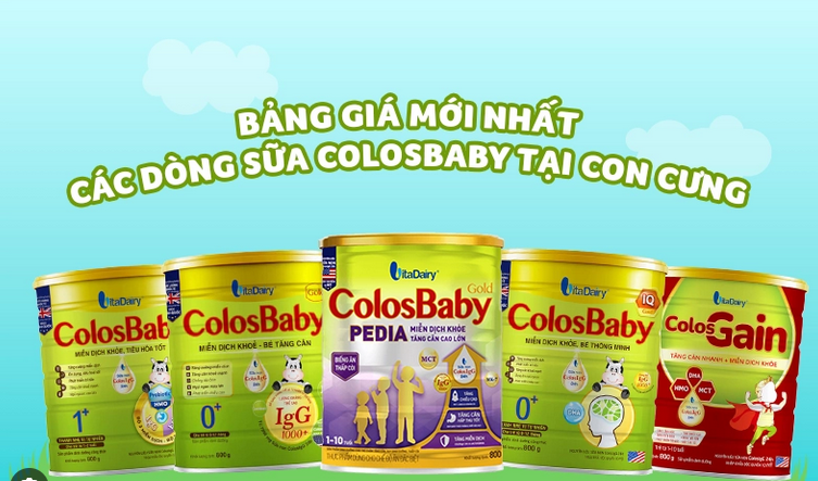 - ColosBaby Gold: chứa sữa non giàu kháng thể, DHA, vitamin và khoáng chất giúp bé phát triển toàn diện.