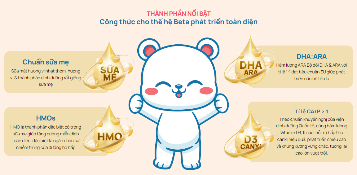 + Tỷ lệ vàng Ca/P, hàm lượng cao Canxi, Vitamin D & K giúp bé phát triển chiều cao vượt trội