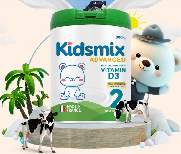 Kidsmix là sản phẩm dinh dưỡng công thức được sản xuất bởi nhà máy Nutribio – thuộc Tập đoàn Sodiaal Top 1 tại Pháp – Top 5 thế giới Hơn 40 năm kinh nghiệm sản suất sữa trên thị trường quốc tế.