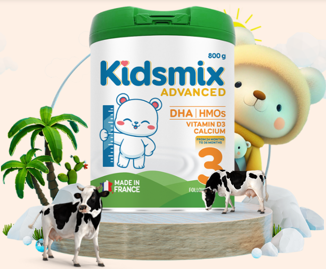 Kidsmix là sản phẩm dinh dưỡng công thức được sản xuất bởi nhà máy Nutribio – thuộc Tập đoàn Sodiaal Top 1 tại Pháp – Top 5 thế giới Hơn 40 năm kinh nghiệm sản suất sữa trên thị trường quốc tế.