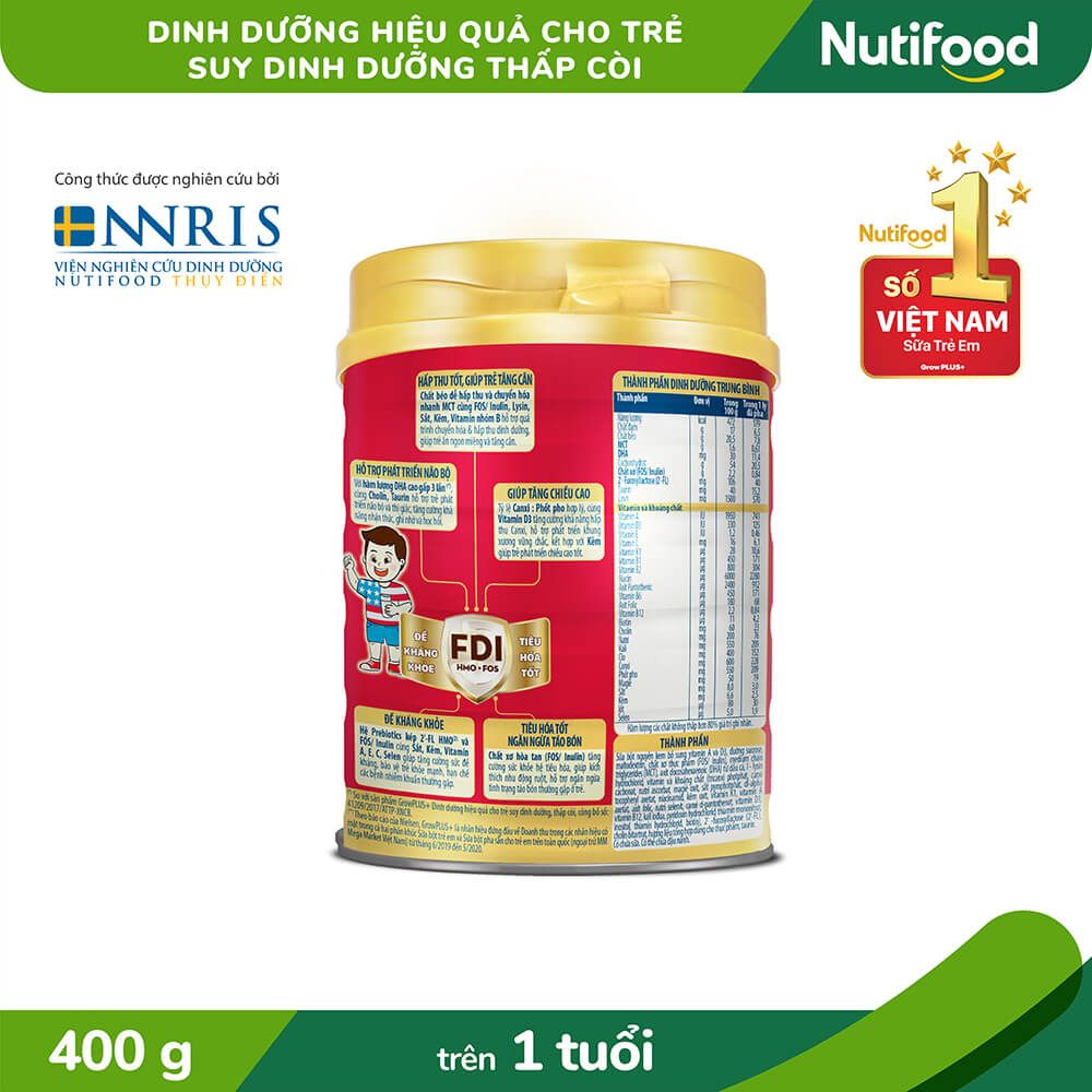 Sữa Bột Nutifood GrowPLUS+ Suy Dinh Dưỡng Trên 1 Tuổi Lon 400g