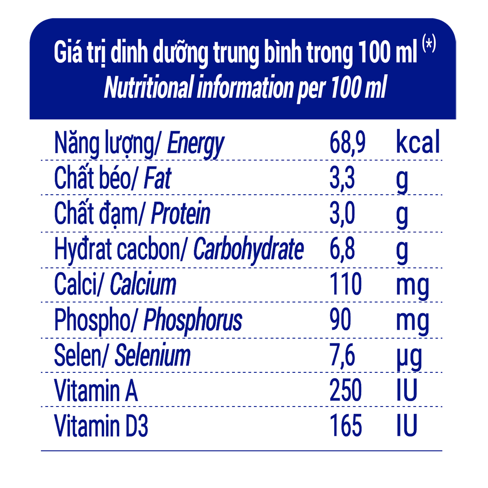 Trong sữa còn bổ sung vitamin D3, A, C và Selen giúp hỗ trợ miễn dịch, phát triển xương và tốt cho thị giác.