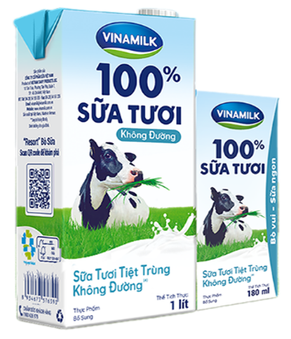 1. Sữa Tươi Tiệt Trùng Vinamilk Không Đường - Hộp 180ML