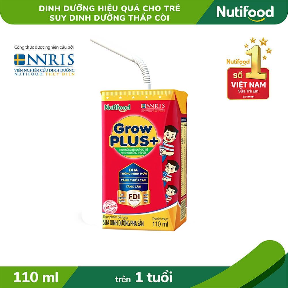 Thùng 48 Hộp 110ml Sữa Bột Pha Sẵn Nutifood GrowPLUS+ Biếng Ăn Trên 1 Tuổi- Tăng Cân Khỏe Mạnh